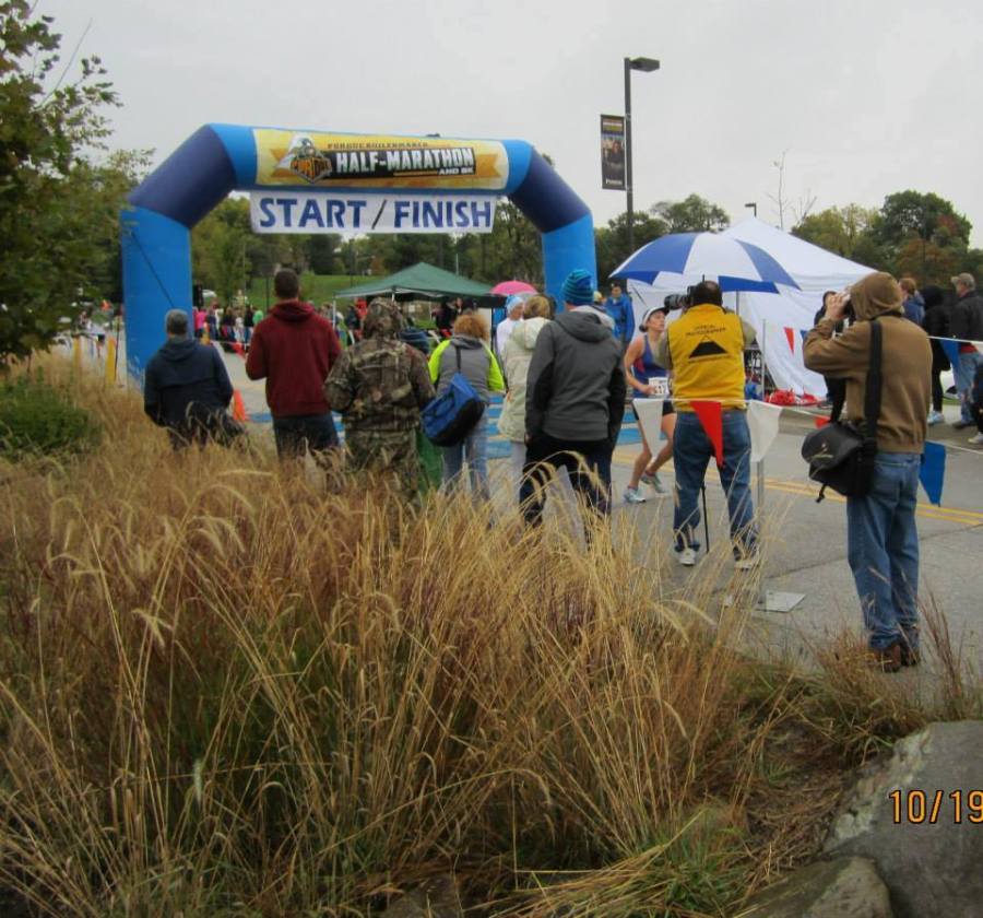Capturing the finish. Team photographer and father John (in brown hoodie), helped document the day.