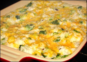 Editors Note: Since there was only two of us to feed, we cut the recipe back and used a smaller portion of fresh steamed broccoli rather than the frozen.