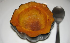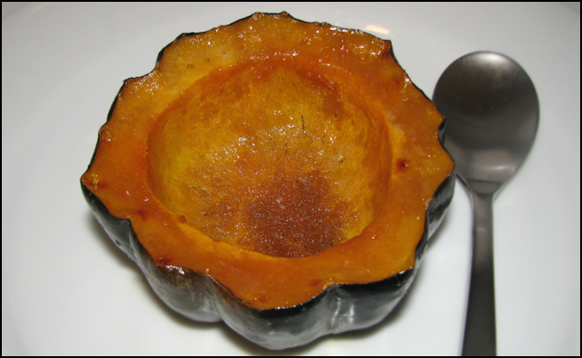 The acorn squash came out soft and flavorful. There were obvious sweet notes from the brown sugar, but the natural sweet nuttiness of the squash family came through as well. The butter helped enhance the velvety mouth feel of the rich orange flesh. If you’re looking for something original to serve your friends, family or a special date that has minimal prep, try acorn squash.