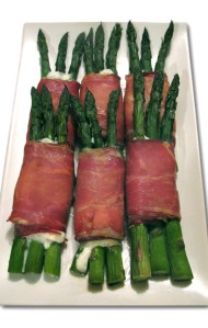 Just for a twist, I think next time I’ll try an alternate presentation and simply lay small pats of the cheese on top of the asparagus for baking. After removing from the oven we can sprinkle pre-crispened bits of prosciutto on top. As with any cooking experience, have fun with it and experiment with the flavors.