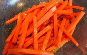 - 1 1/4 lb carrots, cut into 2- by 1/4-inch sticks