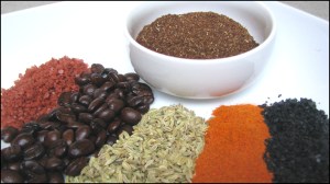 3. Add 1/3 of the fennel seed to the coffee and slowly begin adding the remaining ingredients small portions at a time, check the aroma and taste as you go. You should end up with a rub that has a nice balance (in the nose and on the palate) between earthy, floral, salty and a hint of sweetness. The chili powder will supply a hint of sweet heat in the finish.